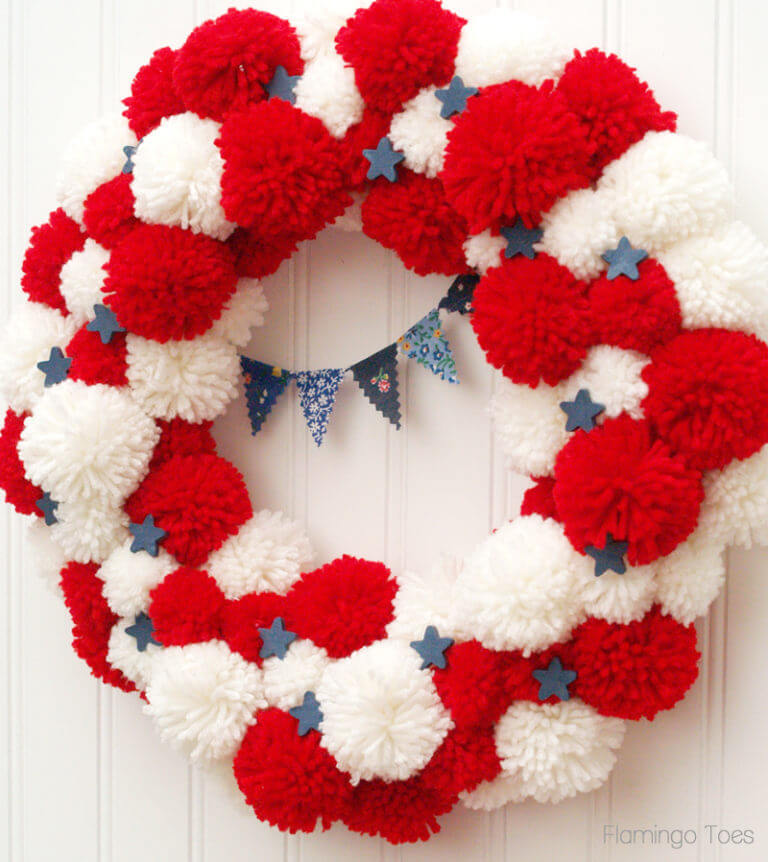 3-Patriotic Pom Pom Wreath