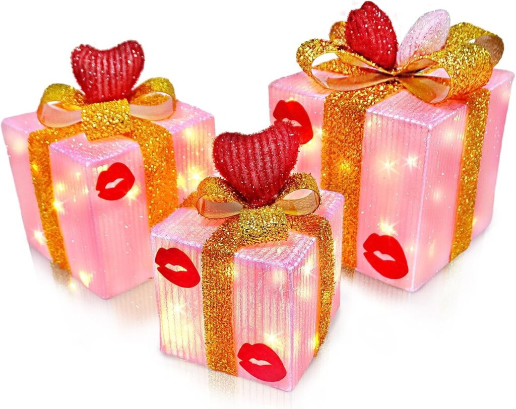 These Valentine’s lighted gift boxes add a touch of charm without taking up much time. The soft pink glow feels warm and romantic, while the gold ribbon and heart details add just enough sparkle to catch the eye without looking overdone.