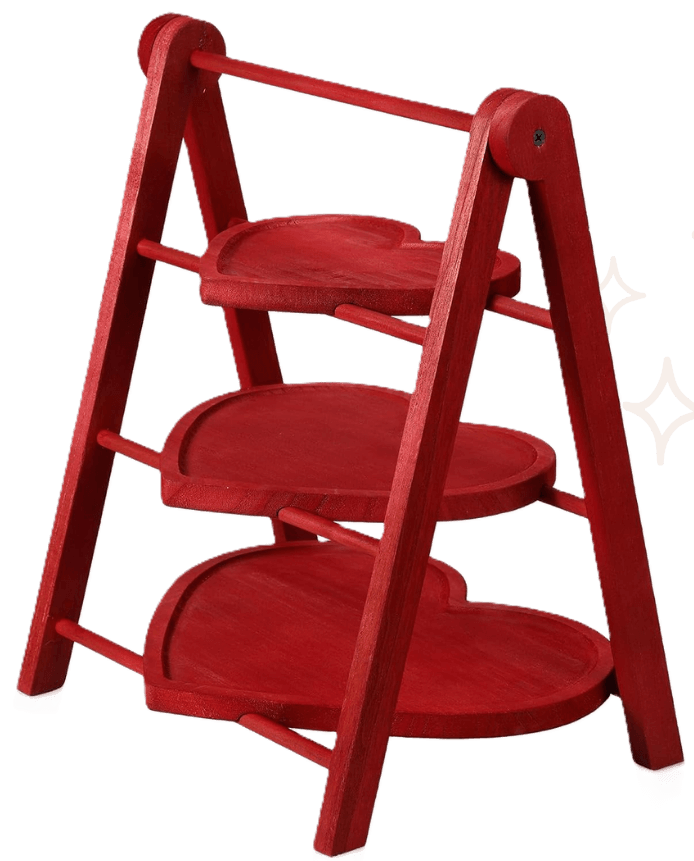 This rich red wooden 3-tier heart platter instantly turns your table into romantic without feeling overdone. Just add some wooden table heart decor to create such a warm, classic feel. You can display sweet treats like macarons, cupcakes, and chocolates.